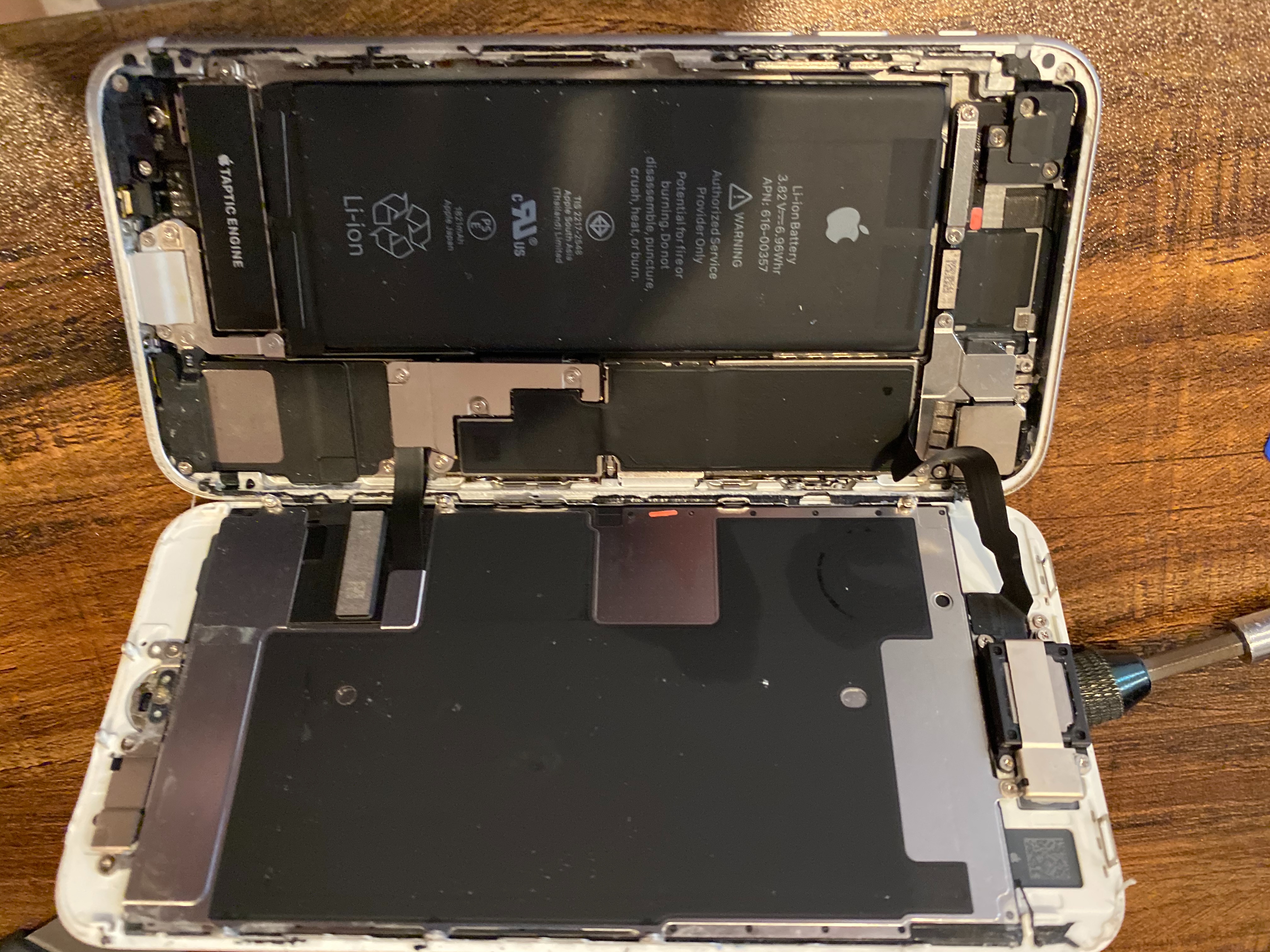 Check the iPhone cover. It works in selfie mode only. There is one screw on the logic board that is.