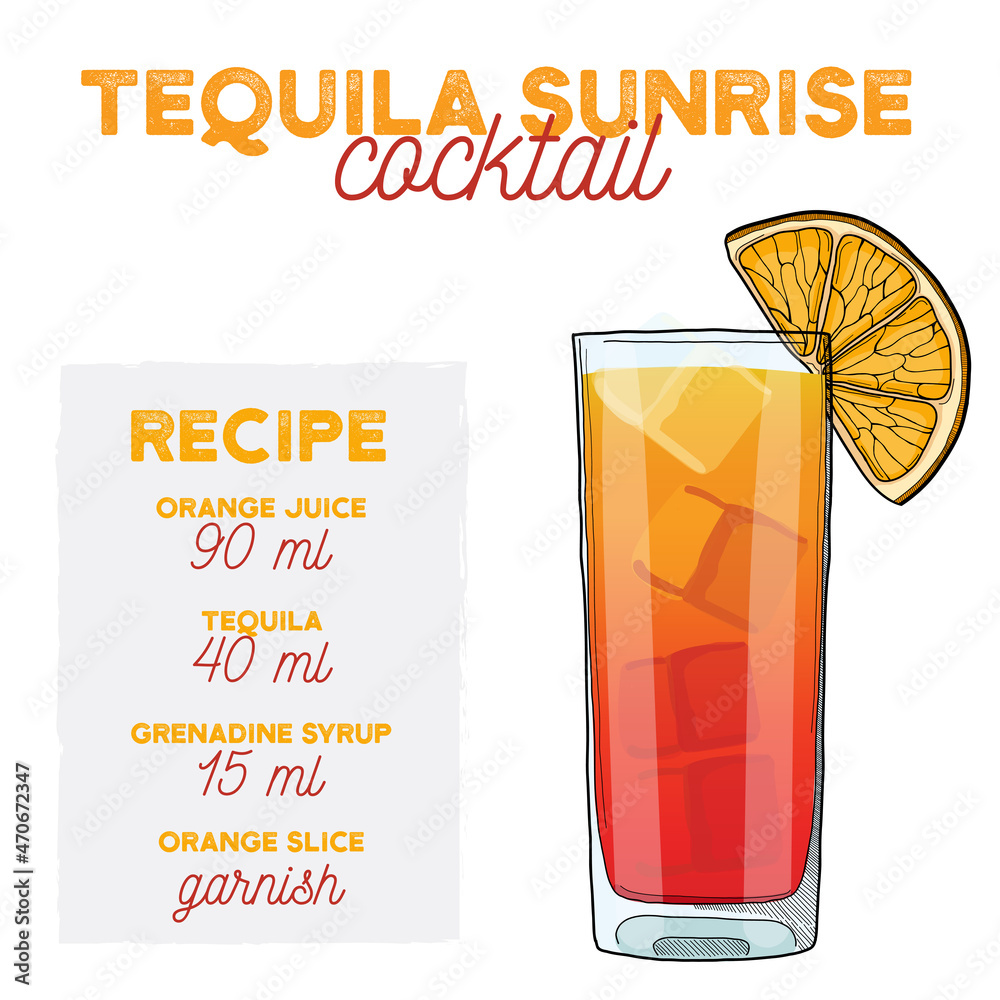 Tequila Sunrise Cocktail Illustration Recipe Drink With Ingredients Stock Vector Adobe Stock